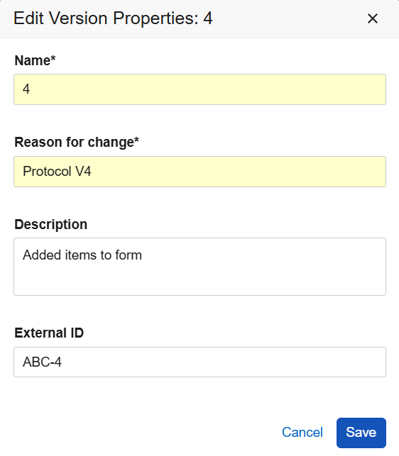 - 新しいバージョンが作成された理由を簡潔に説明する変更理由(Reason for change)を入力します。