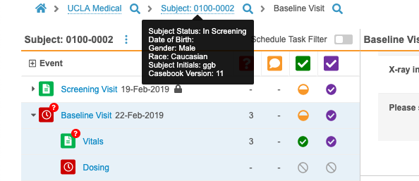 - Vault now displays the current casebook version for a Subject in a tooltip on the Subject in the breadcrumb menu.