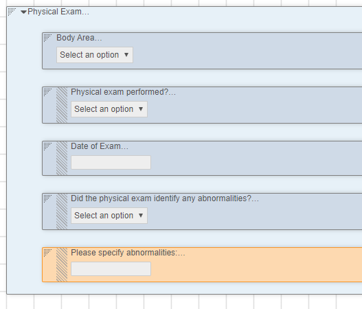 The ability to indent items provides more design options for form layout. Study designers can indent items to display items as a nested list and organize items hierarchically.