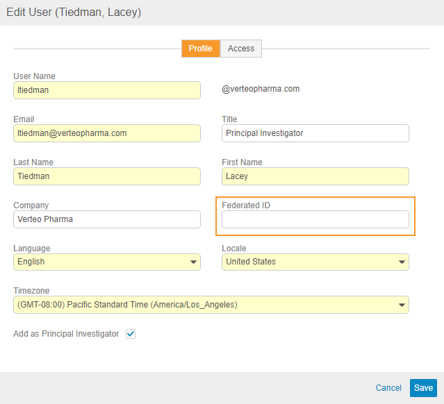 When creating and editing users from EDC Tools > Users, user administrators can now provide a Federated ID. Vault uses Federated ID to associate the user’s account with an external user ID for use in single sign-on (SSO) systems and other integration purposes.