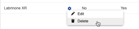 - 목록에서 삭제하려는 스터디 약물을 찾으십시오.