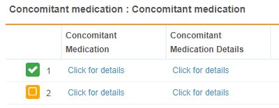 In EDC, a study design can include repeating Forms with repeating Item Groups. When a user views a repeating form in the table view, they can see one column for each repeating item group on that form. Each row in a repeating Item Group’s column contains a link to view the repeating group on its form.