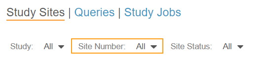 We replaced the Site Name filter with a Site Number filter in Review > Study Sites. We also relabeled the Site filter (which filtered by Site Number) as Site Number in Review > Queries. These changes help provide a more consistent experience across subtabs in Review.