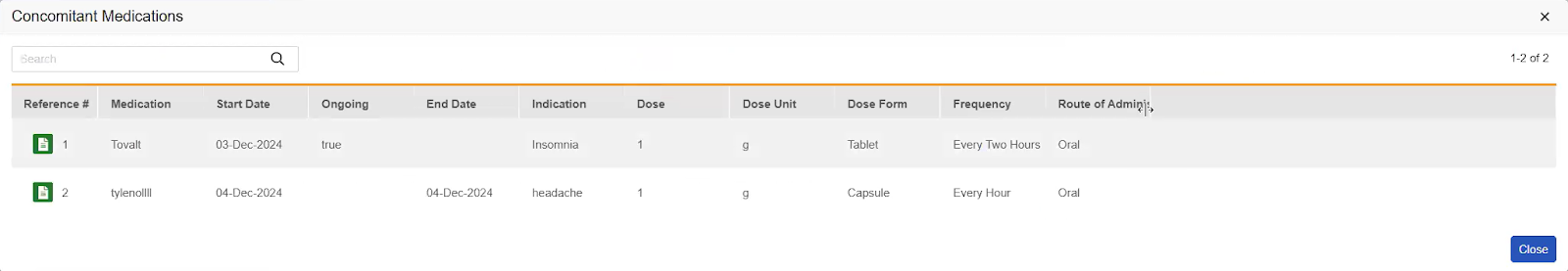 The following fields are available for the Concomitant Medication form type: