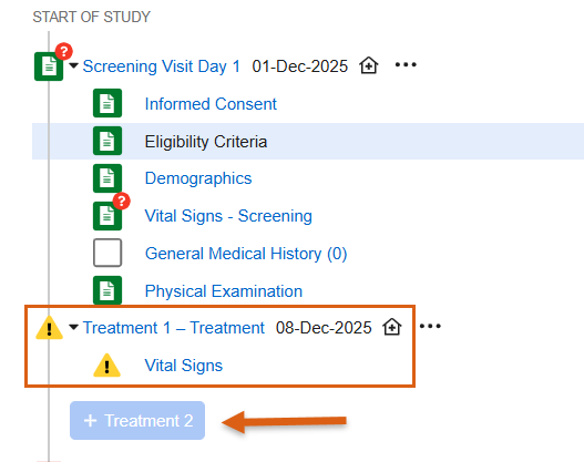 When a rule determines an Event Group that contains data should be removed, the system now prevents new forms and events from being added to it. For repeating Event Groups, the “+New” button will be disabled. If a user attempts to add the next Event Group, they will see a message: “This action cannot be performed because this event group is no longer required based on other data entered.”