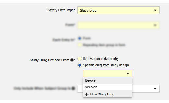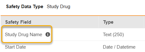 The following fields are available for the Study Drug form type: