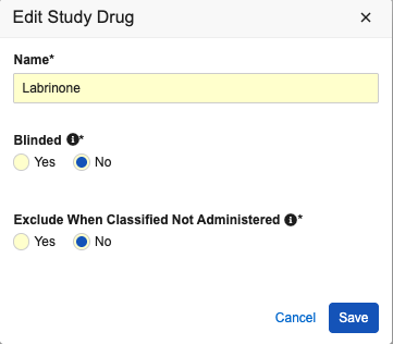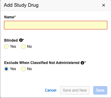 Answer for Each Study Drug Always set No Only No is supported