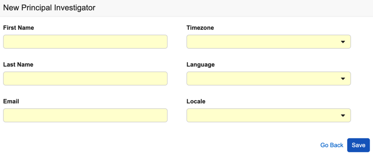 可以创建 PI 记录来存储研究者信息,而无需授予系统访问权限。