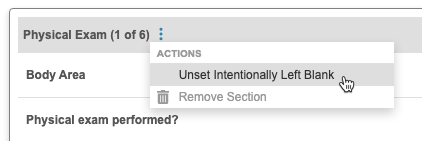 - Unset Intentionally Left Blank: Unsets the Intentionally Left Blank status on all Items in the Item Group instance (section/row)