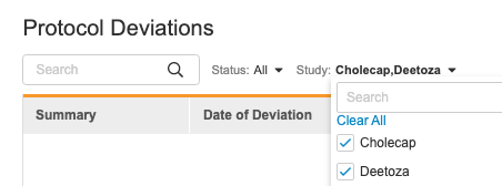 With this release, users can now filter the Protocol Deviations list by Study.