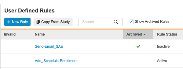 Users can then view and restore these archived rules. Archived rules behave in the same way as Inactive rules. Vault excludes these rules from validations and documentation, deploys them (in the Archived status), and prevents users from marking them as Active. That prevents these rules from executing.