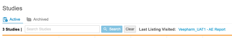 Users can now search for specific Studies from the Studies page in Workbench. Workbench also displays a link to the Last Listing Visited on this page, which opens the last listing that the current user visited.