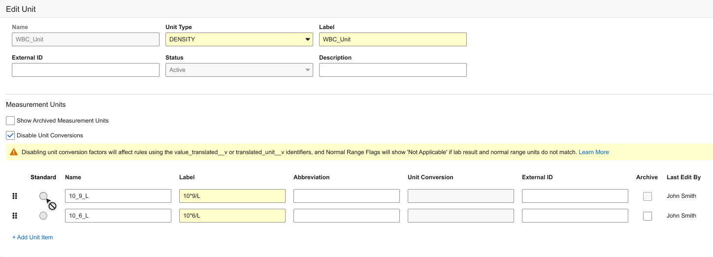 For lab analytes with the Unit data type, the unit of the Lab Result and Lab Normal Override (if configured) will be pre-set based on the below conditions: